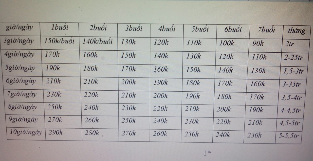 Bảng giá giúp việc theo giờ chỉ là nội dung để tham khảo, còn tùy theo tính chất công việc cụ thể, khối lượng công việc giúp việc mà đề ra mức giá phù hợp, GIÚP VIỆC THU HIỀN - Giúp việc gia đình tại Hải Phòng